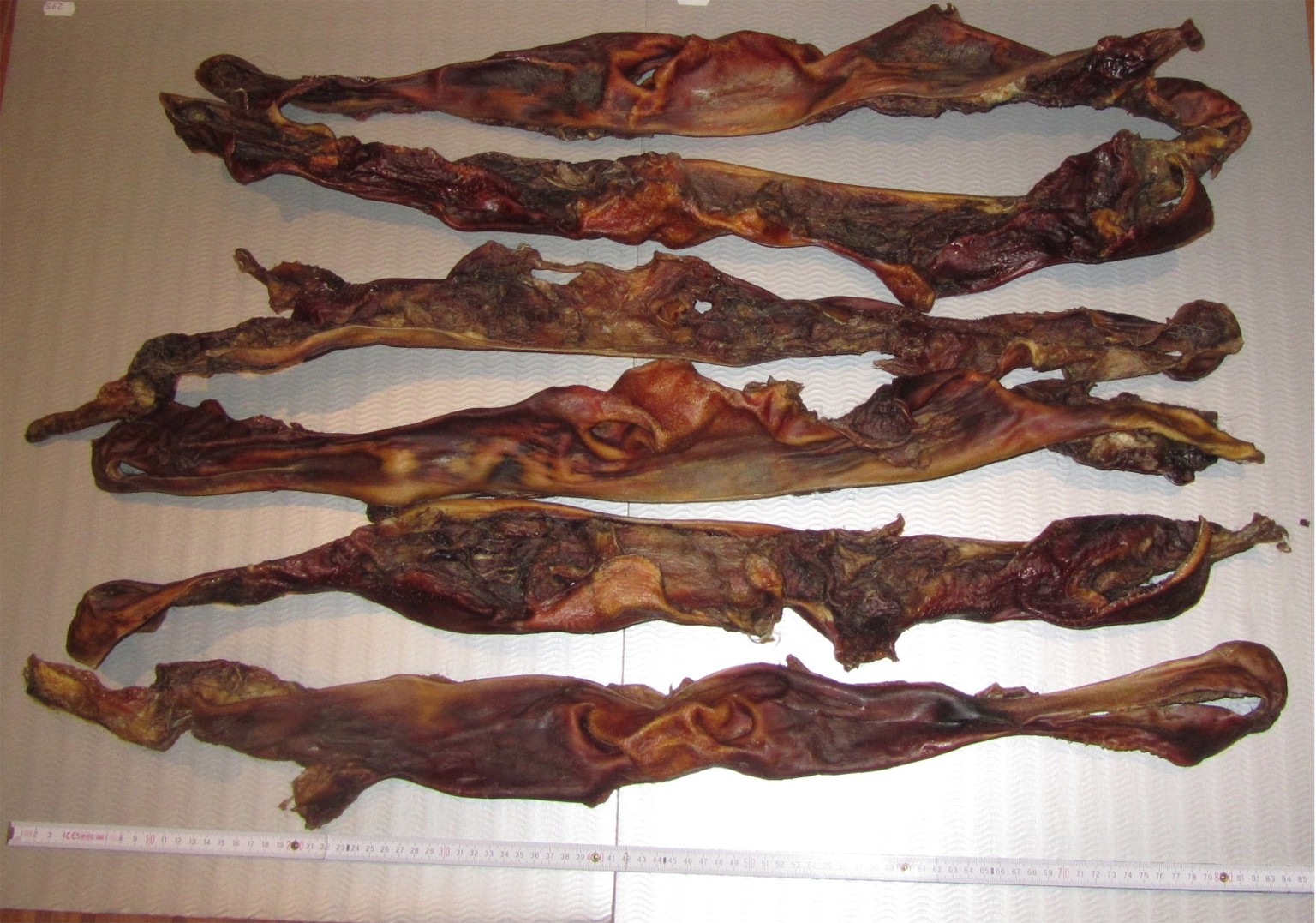 Sie erhalten 10 Stück Rindermaulfleisch / Ochsenmaul-Stange