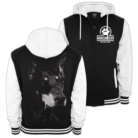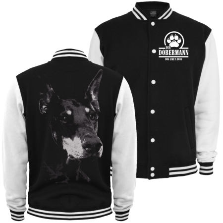 Baseballjacke wahlweise mit oder ohne Kapuze Motiv : Dobermann BOSS • 380 g/m² • 65% Baumwolle ; 35% Polyester