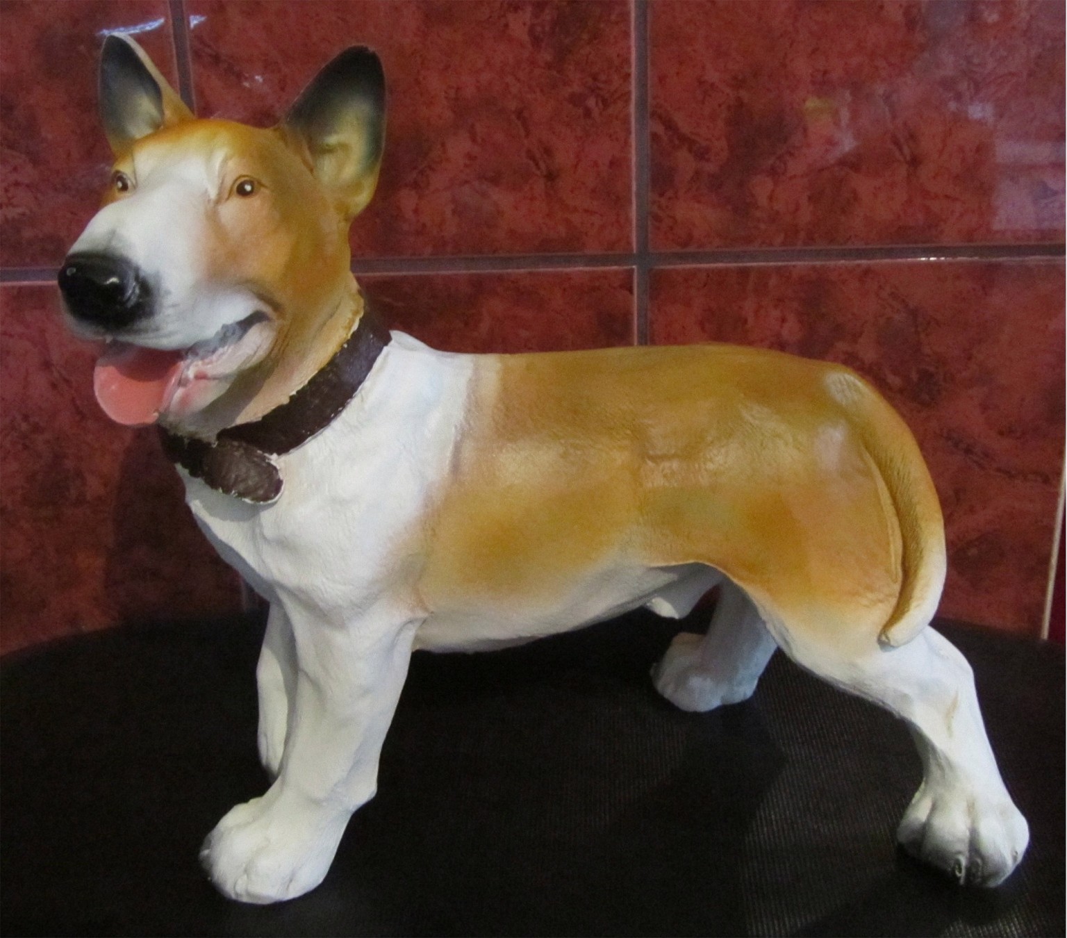 Bullterrier Figur Stehend , braun - weiss Material : aus hochwertigem Kunstharz