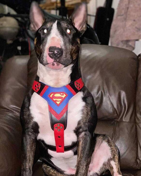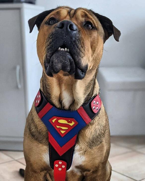 Zeigen Sie Ihren Superhund mit einem Superman-Designgeschirr.