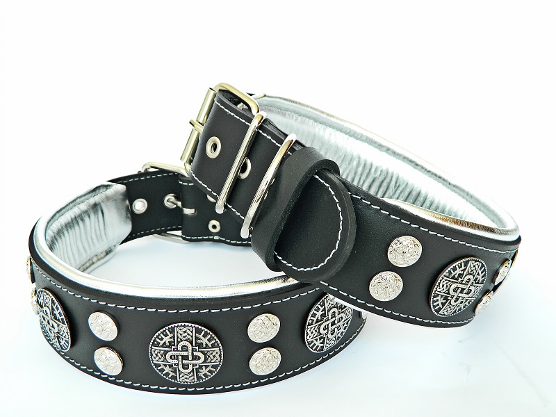 Das "Hektor" Halsband, aus unserer "Exclusive" Kollektion hat eine Kombination aus 2 Ziernietenmodellen.