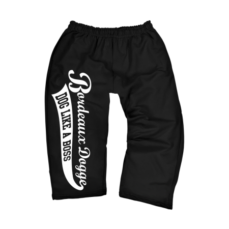 Jogginghose Motiv: Bordeaux Dogge Erhältich als Jogginghose oder 3/4 Hose Farbe: schwarz 80% Baumwolle; 20% Polyester unten offen! keine Bündchen!
