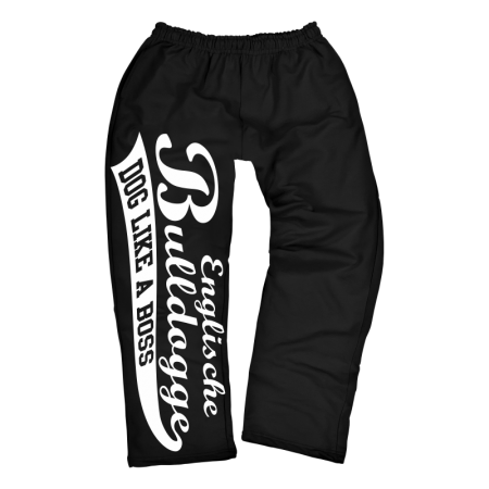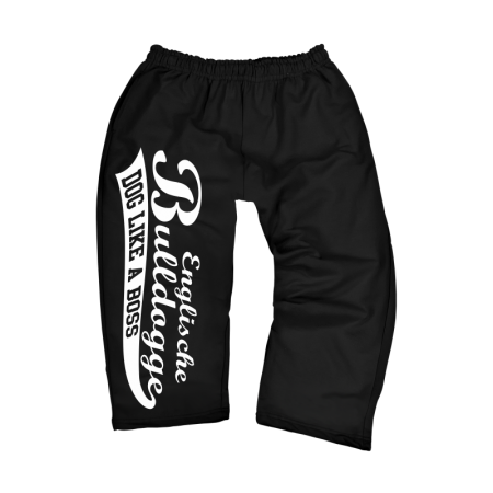 Jogginghose Motiv: Englische Bulldogge Erhältich als Jogginghose oder 3/4 Hose Farbe: schwarz 80% Baumwolle; 20% Polyester
