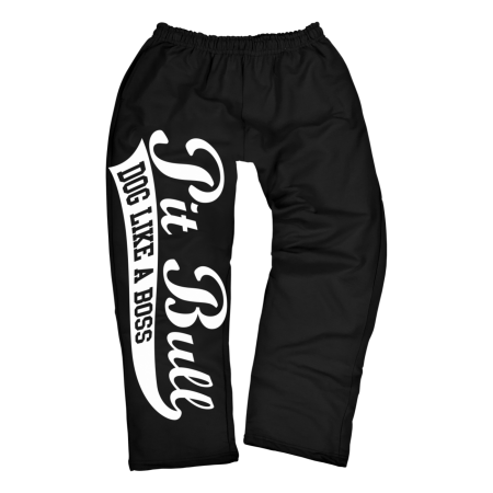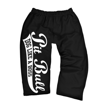 Jogginghose Motiv: Pit Bull BOSS Erhältich als Jogginghose oder 3/4 Hose Farbe: schwarz 80% Baumwolle; 20% Polyester unten offen! keine Bündchen!