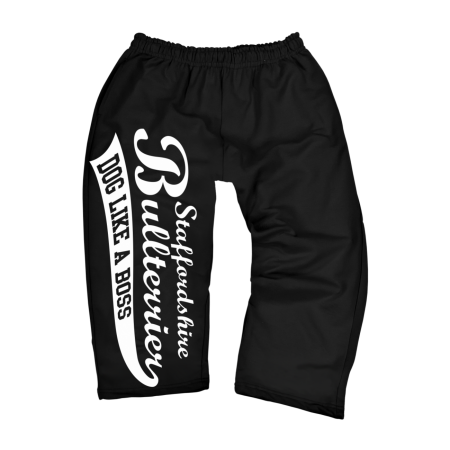 Jogginghose Motiv: Staffordshire Bullterrier Erhältich als Jogginghose oder 3/4 Hose Farbe: schwarz 80% Baumwolle; 20% Polyester