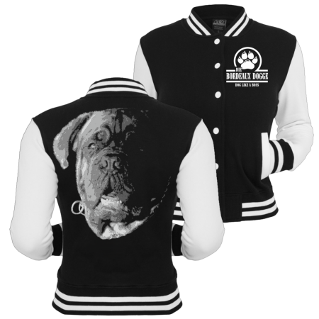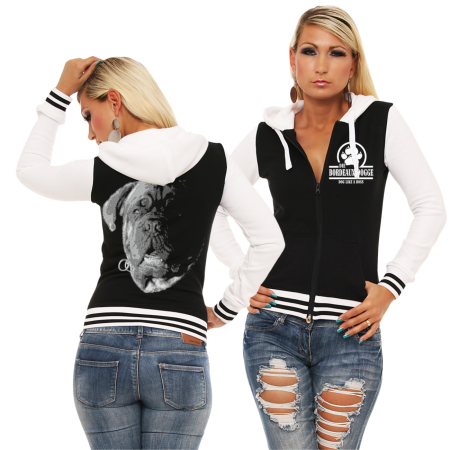 Frauen Baseballjacke wahlweise mit oder ohne Kapuze Motiv : Bordeaux Dogge BOSS Slim Fit 300g/qm Fleece 63% Baumwolle, 37% Polyester