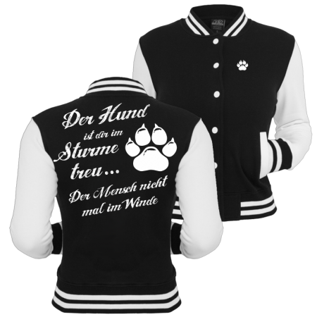 Frauen Baseballjacke Motiv : Der Hund ist dir im Sturme treu - Der Mensch nicht mal im Winde Slim Fit 300g/qm Fleece 63% Baumwolle, 37% Polyester