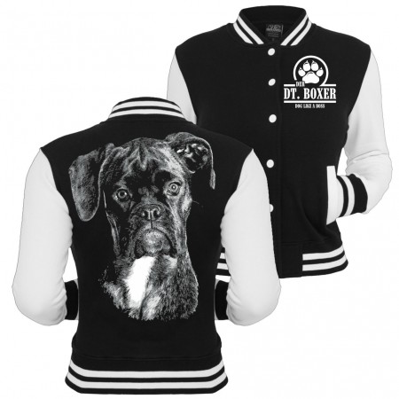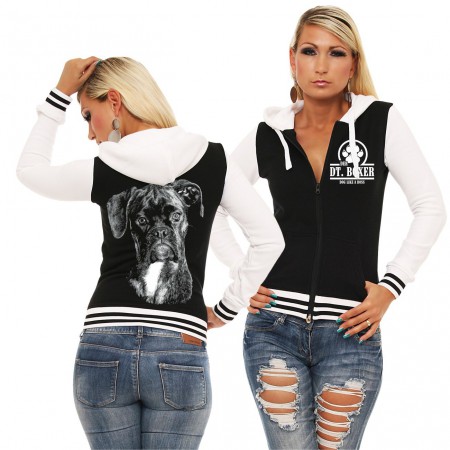Frauen Baseballjacke wahlweise mit oder ohne Kapuze Motiv : Deutscher Boxer BOSS Slim Fit 300g/qm Fleece 63% Baumwolle, 37% Polyester