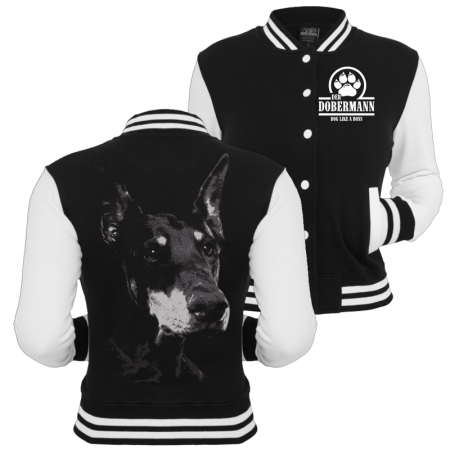 Frauen Baseballjacke wahlweise mit oder ohne Kapuze Motiv : Dobermann BOSS Slim Fit 300g/qm Fleece 63% Baumwolle, 37% Polyester