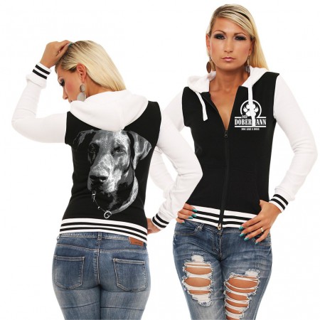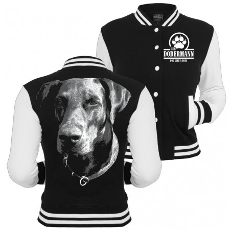 Frauen Baseballjacke wahlweise mit oder ohne Kapuze Motiv : Dobermann UNKUPIERT BOSS Slim Fit 300g/qm Fleece 63% Baumwolle, 37% Polyester
