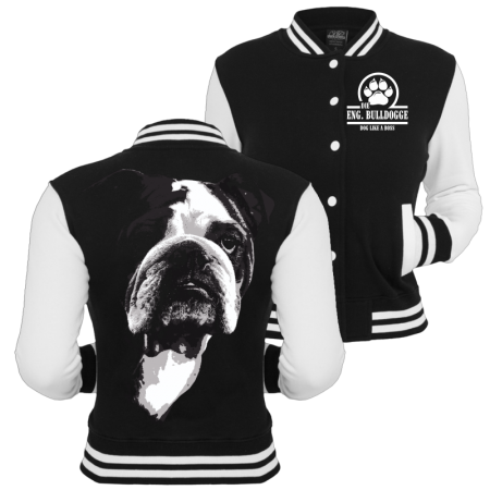 Frauen Baseballjacke wahlweise mit oder ohne Kapuze Motiv : Englische Bulldogge BOSS Slim Fit 300g/qm Fleece 63% Baumwolle, 37% Polyester