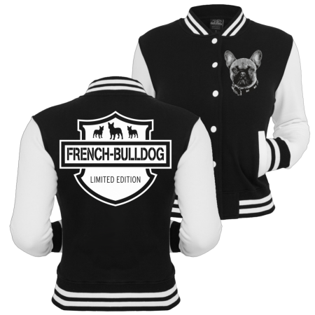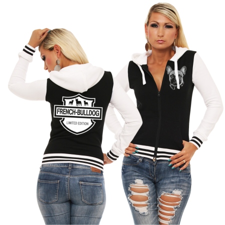 Frauen Baseballjacke wahlweise mit oder ohne Kapuze Motiv : French Bulldog Limited Edition Slim Fit 300g/qm Fleece 63% Baumwolle, 37% Polyester