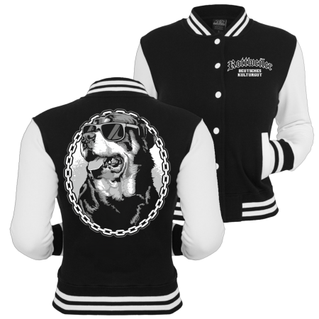 Frauen Baseballjacke wahlweise mit oder ohne Kapuze Motiv : ROTTWEILER deutsches Kulturgut Slim Fit 300g/qm Fleece 63% Baumwolle, 37% Polyester