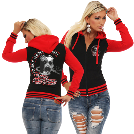Frauen Kapuzen - Baseballjacke Motiv : Die Rasse Kampfhund gibt es nicht Slim Fit 300g/qm Fleece 63% Baumwolle, 37% Polyester