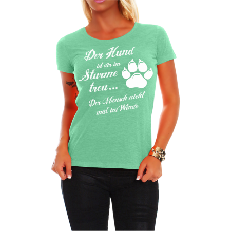 T- Shirt Motiv: Der Hund ist dir im Sturme treu Textildruck im hochwertigen Siebdruckverfahren hergestellt. auch erhältlich als: T- Shirt, Trägershirt, Sweatshirt oder Kapuzensweatshirt Grössen: M, L, XL, S und XXL