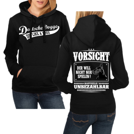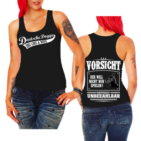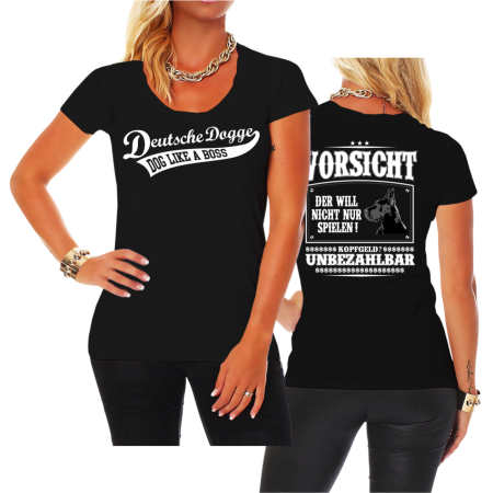 T- Shirt Motiv: Deutsche Dogge VORSICHT Textildruck im hochwertigen Siebdruckverfahren hergestellt. auch erhältlich als: T- Shirt, Trägershirt, Sweatshirt oder Kapuzensweatshirt Grössen: M, L, XL, S und XXL