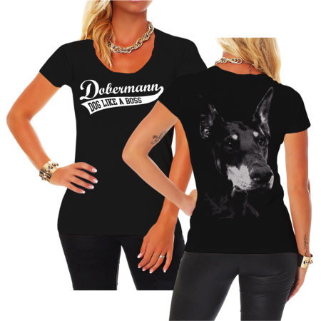 T- Shirt Motiv: Dobermann BOSS (neu) Textildruck im hochwertigen Siebdruckverfahren hergestellt. auch erhältlich als: T- Shirt, Sweatshirt oder Kapuzensweatshirt Grössen: M, L, XL, S und XXL