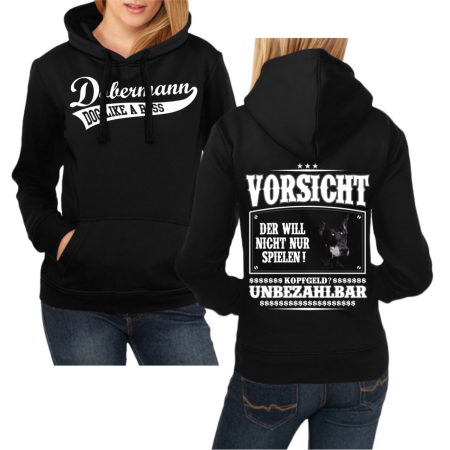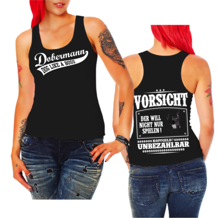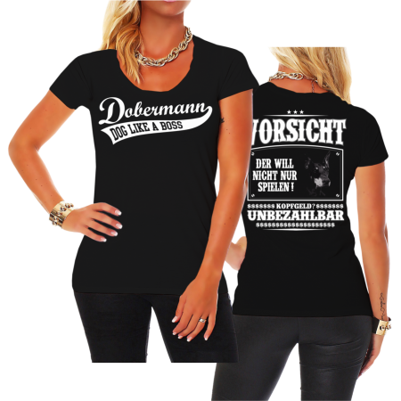 T- Shirt Motiv: Dobermann VORSICHT Textildruck im hochwertigen Siebdruckverfahren hergestellt. auch erhältlich als: T- Shirt, Trägershirt, Sweatshirt oder Kapuzensweatshirt Grössen: M, L, XL, S und XXL