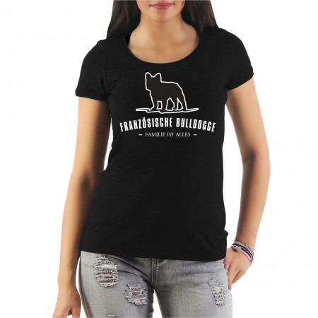 T- Shirt Motiv: Französische Bulldogge - Familie ist alles Textildruck im hochwertigen Siebdruckverfahren hergestellt. auch erhältlich als: T- Shirt, Trägershirt, Sweatshirt oder Kapuzensweatshirt Grössen: M, L, XL, S und XXL