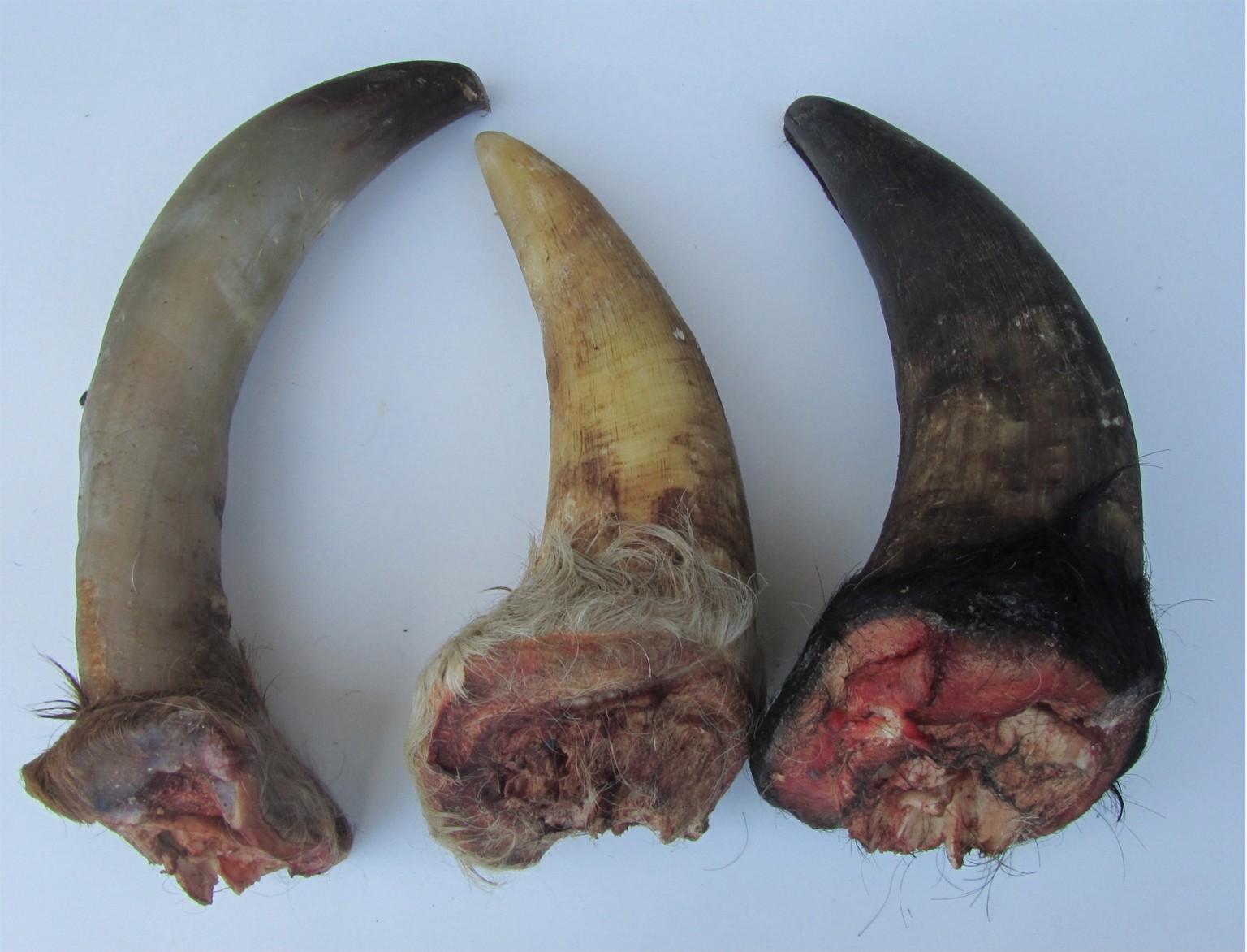 Rinderhorn Kuhhorn Kauhorn Horn (tiefgefroren) mit Fell