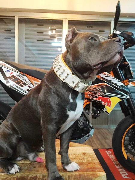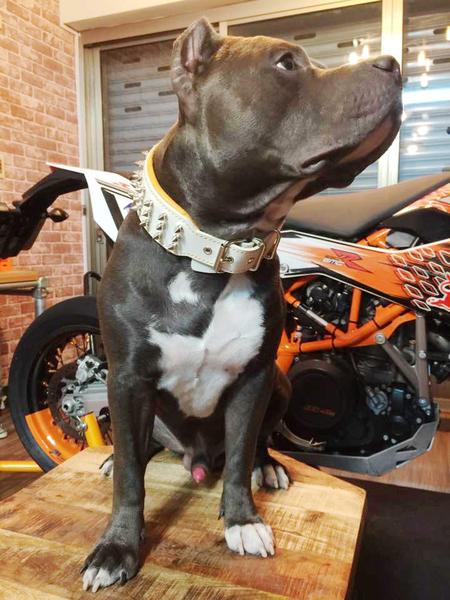 Der "Silberne Riese" ist ein klassisches Nietenhalsband mit 12 mm langen, silberfarbigen Schraubspitzen.