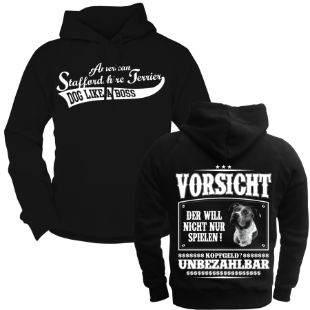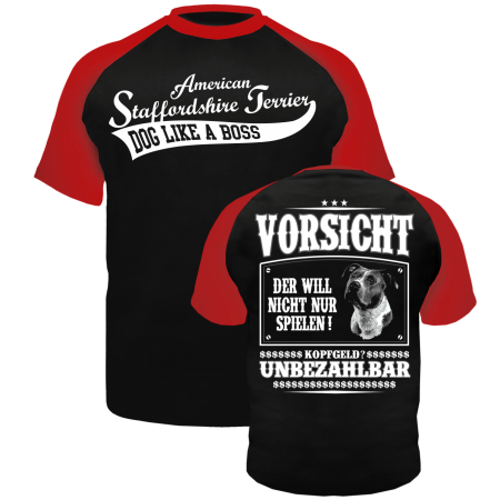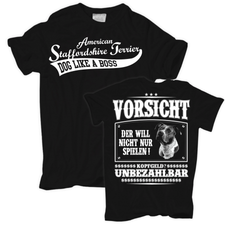 T- Shirt Motiv: American Staffordshire Terrier - VORSICHT Textildruck im hochwertigen Siebdruckverfahren hergestellt. auch erhältlich als: T- Shirt, Trägershirt, Sweatshirt oder Kapuzensweatshirt Grössen: S, M, L, XL, XXL, XXXL, XXXXL und XXXXXL