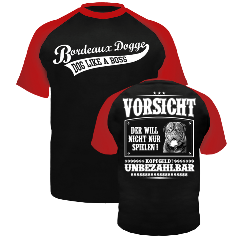 T- Shirt Motiv: Bordeaux Dogge VORSICHT - Der will nicht nur spielen ! Textildruck im hochwertigen Siebdruckverfahren hergestellt. auch erhältlich als: T- Shirt, Trägershirt, Sweatshirt oder Kapuzensweatshirt Grössen: S, M, L, XL, XXL, XXXL, XXXXL und XXXXXL