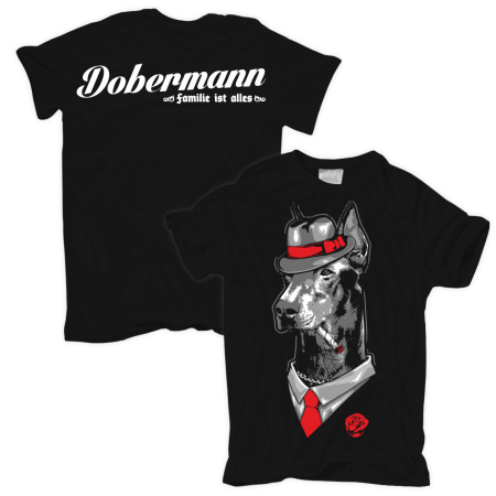 T- Shirt Motiv: Dobermann - Familie ist alles Textildruck im hochwertigen Siebdruckverfahren hergestellt. auch erhältlich als: T- Shirt, Trägershirt, Sweatshirt oder Kapuzensweatshirt Grössen: S, M, L, XL, XXL, XXXL, XXXXL und XXXXXL