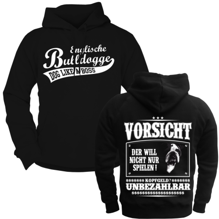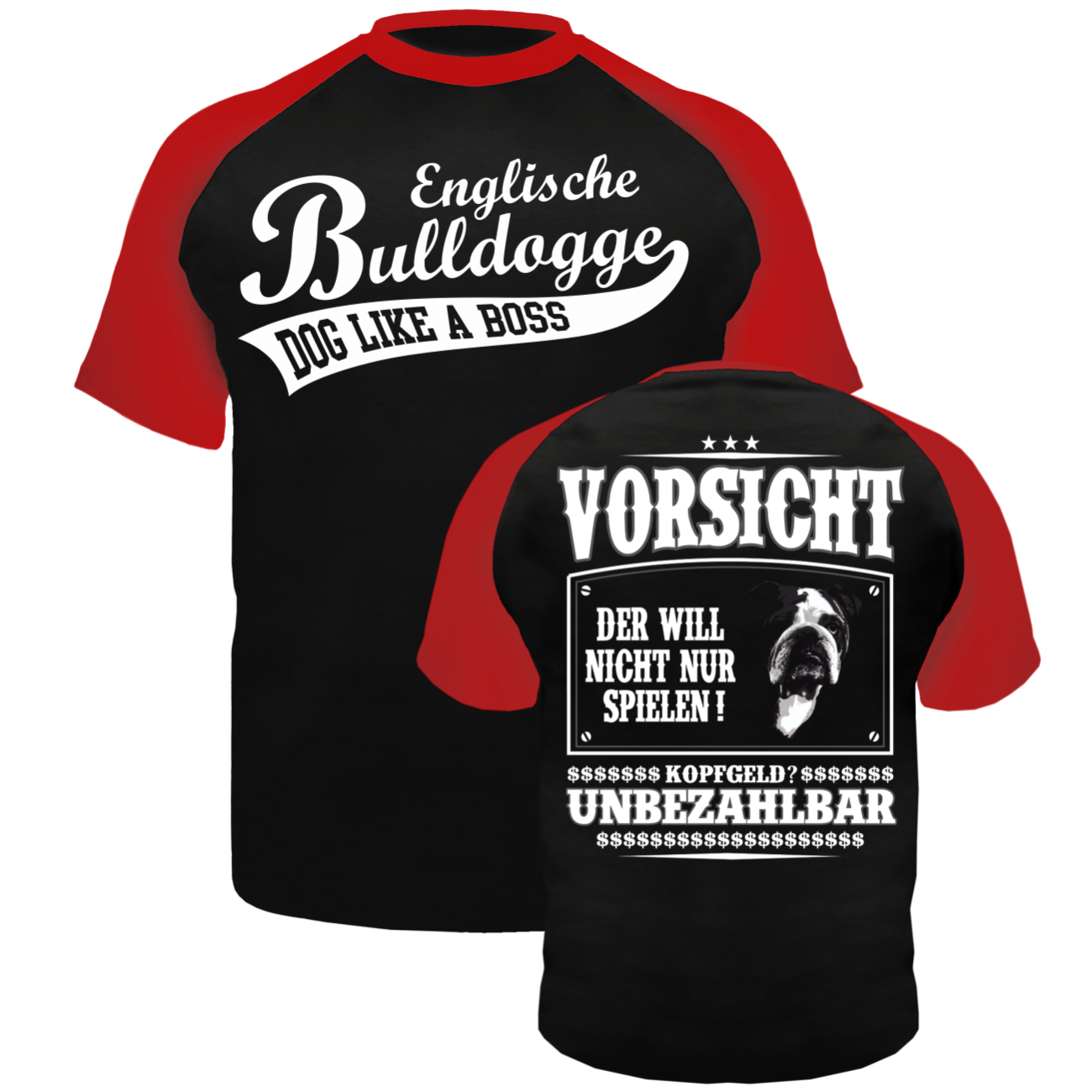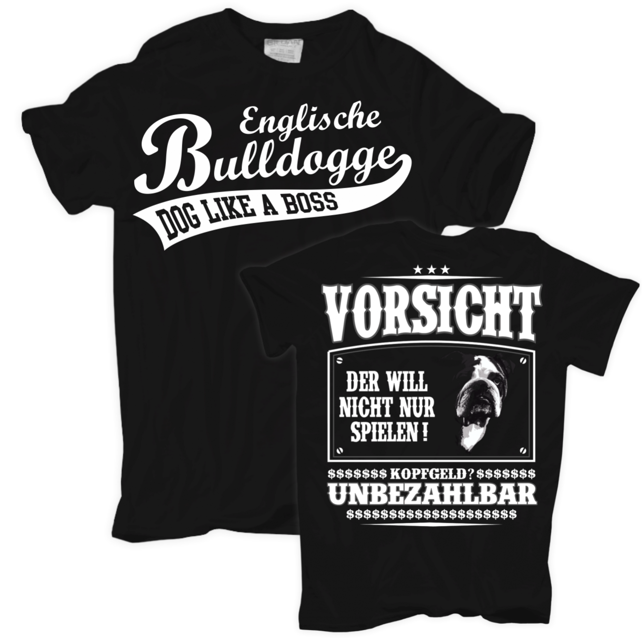 T- Shirt Motiv: Englische Bulldogge VORSICHT ! Textildruck im hochwertigen Siebdruckverfahren hergestellt. auch erhältlich als: T- Shirt, Trägershirt, Sweatshirt oder Kapuzensweatshirt Grössen: S, M, L, XL, XXL, XXXL, XXXXL und XXXXXL