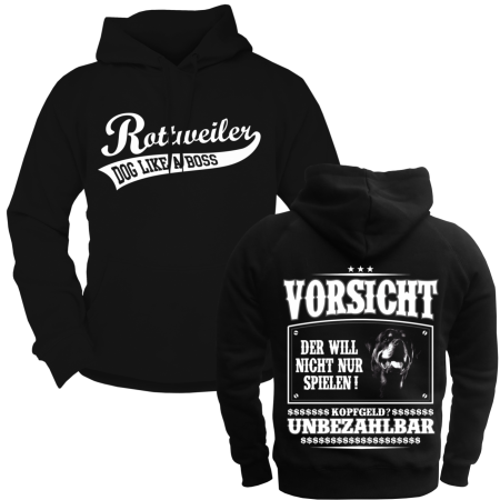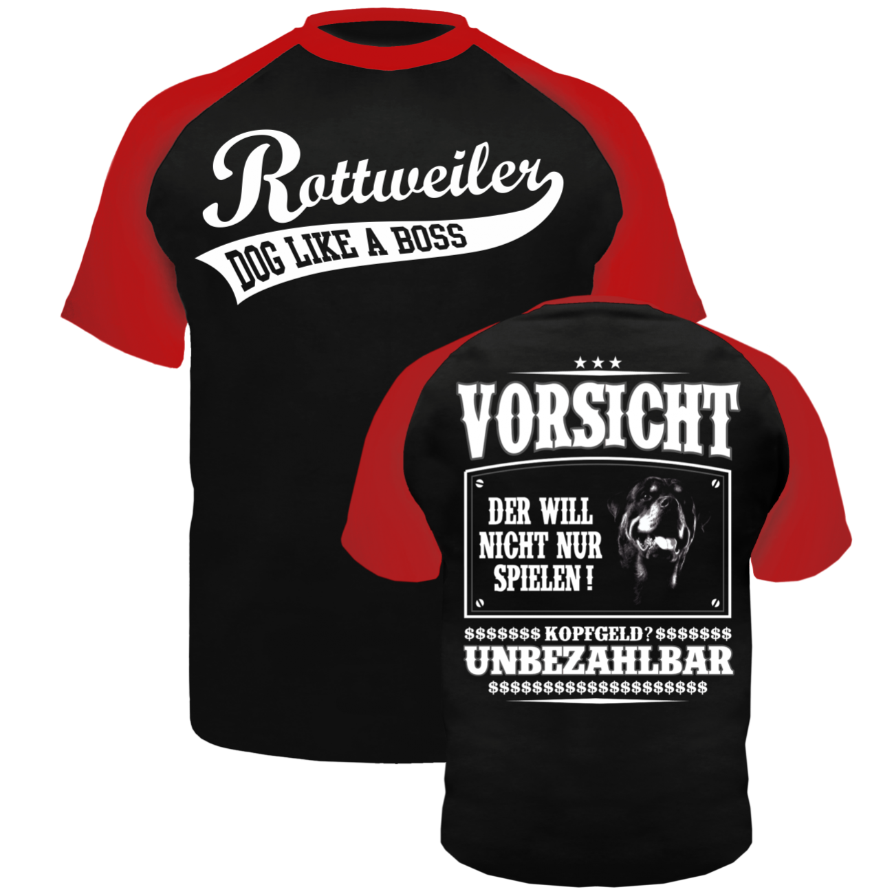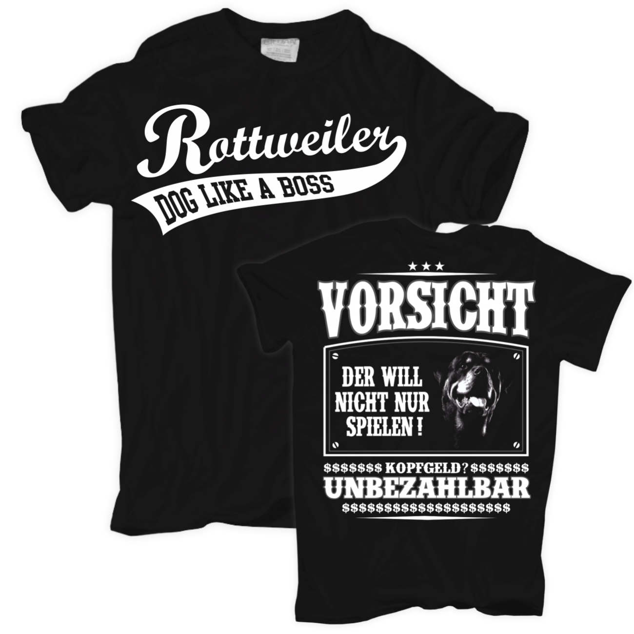 T- Shirt Motiv: Rottweiler VORSICHT - DER WILL NICHT NUR SPIELEN ! Textildruck im hochwertigen Siebdruckverfahren hergestellt. auch erhältlich als: T- Shirt, Trägershirt, Sweatshirt oder Kapuzensweatshirt Grössen: S, M, L, XL, XXL, XXXL, XXXXL und XXXXXL