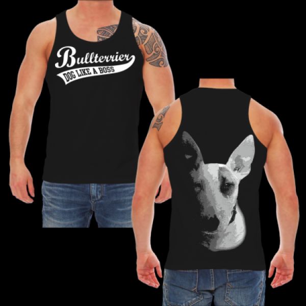 T- Shirt Motiv: Bullterrier BOSS Textildruck im hochwertigen Siebdruckverfahren hergestellt. auch erhältlich als: T- Shirt, Trägershirt, Sweatshirt oder Kapuzensweatshirt Grössen: S, M, L, XL, XXL, XXXL, XXXXL und XXXXXL
