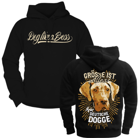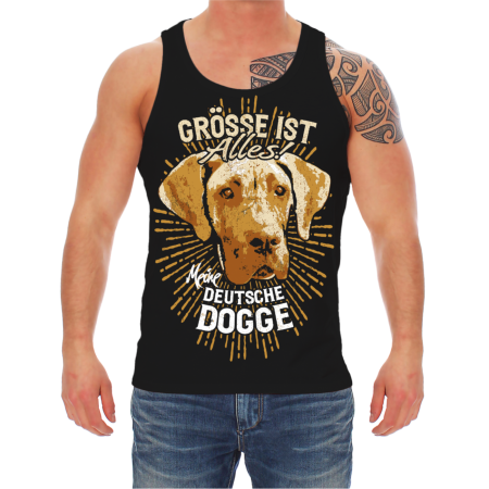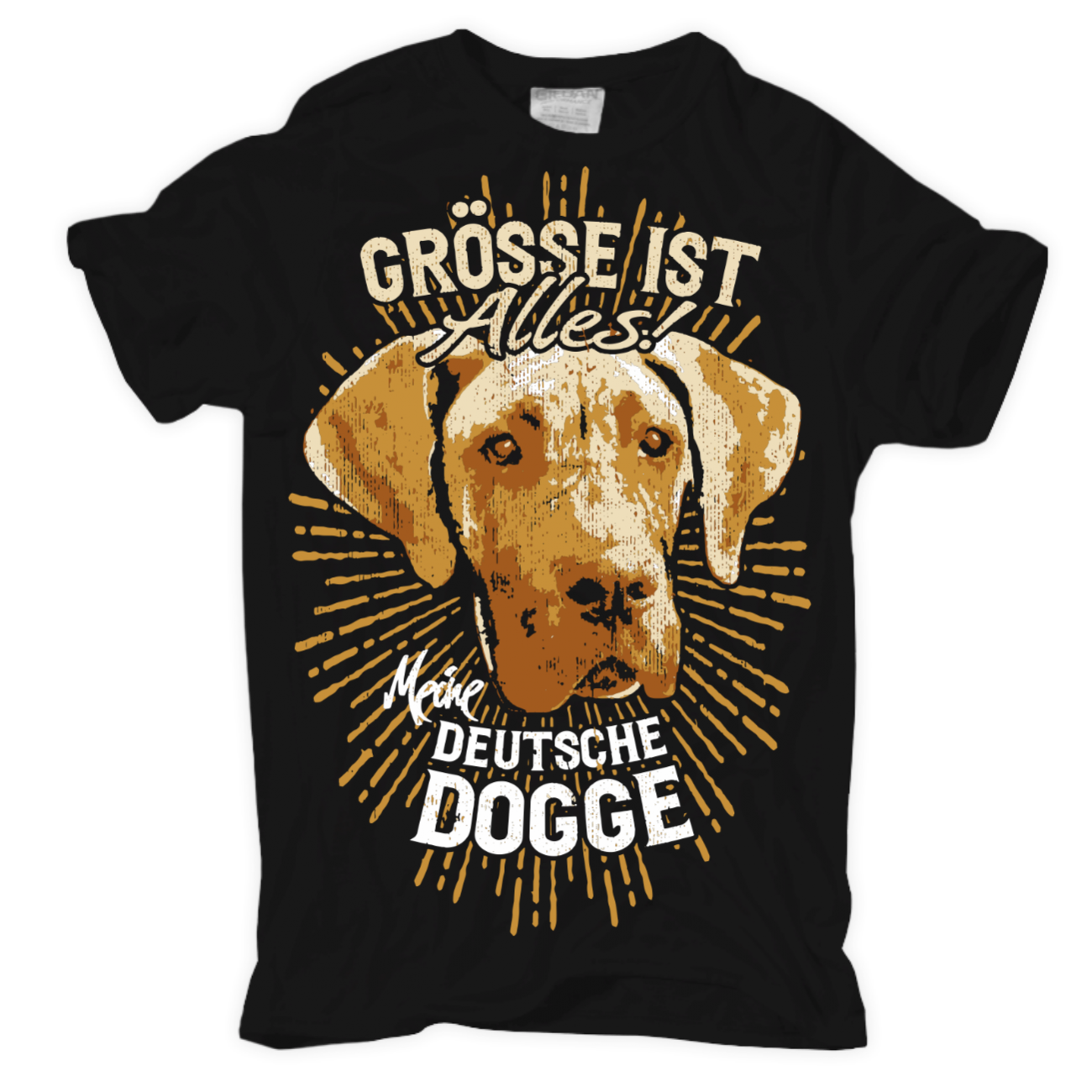 T- Shirt Motiv: Deutsche Dogge - GRÖSSE IST ALLES ! Textildruck im hochwertigen Siebdruckverfahren hergestellt. auch erhältlich als: T- Shirt, Trägershirt, Sweatshirt oder Kapuzensweatshirt Grössen: S, M, L, XL, XXL, XXXL, XXXXL und XXXXXL