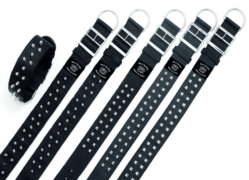 Breite Nylonhalsbänder mit Pyramiden- oder Spitzkopfnieten