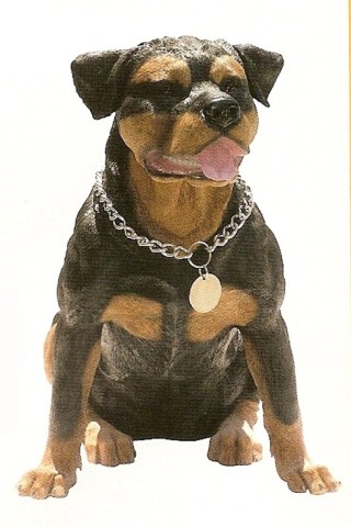 Hundefigur Rottweiler sitzend mit Metallhalsband