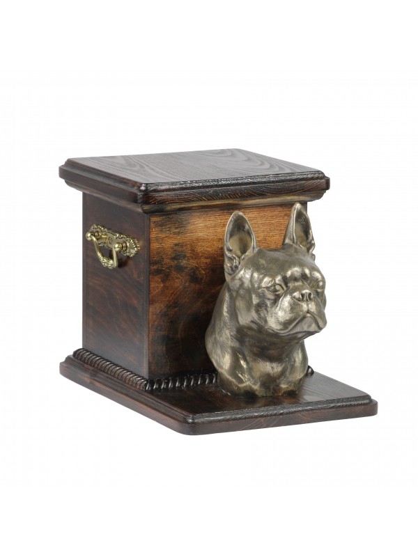 Holzbestattungsurne, ausgeführt aus Birkenholz – haltbar und beständig. Bestattungsurne hat Messinggriffe und Verzierungen im Kranzstil. Dank dem abnehmbaren Urnendeckel ist sie bequemer in der Nutzung.