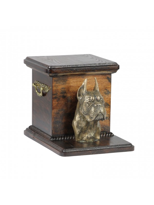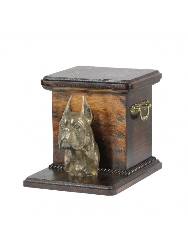 Holzbestattungsurne, ausgeführt aus Birkenholz – haltbar und beständig. Bestattungsurne hat Messinggriffe und Verzierungen im Kranzstil. Dank dem abnehmbaren Urnendeckel ist sie bequemer in der Nutzung.