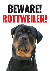 Warnschild Beware! Rottweiler
